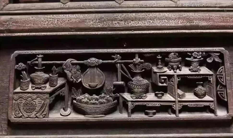 雕刻的图案内容有,吉祥图案、山水风景、人物神仙、故事戏曲、博古杂宝、生活场景以及一些伦理教训等。