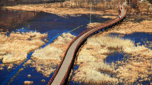 走婚桥,在泸沽湖的草海中,桥下有着积攒多年的泥沙,导致水变得浅了,又因为长有茂密的芦苇,所以远远望去,就像一片草的海洋。在当地人们也叫它“草海”。走婚桥在当时是唯一一座横跨草海,穿过芦丛,连接两岸村落的一座桥。为两岸村民的交流、婚嫁提供了便捷的通道。被称为“天下第一鹊桥”的美称。