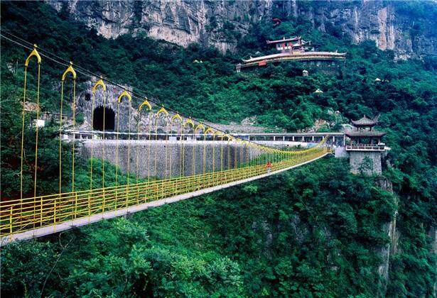 情人桥悬在空中超过三百米,走在上面想不心跳加速都难。西羌九皇山景区是国家4A级旅游景区。景区中完整地再现了西羌的文化遗迹和生活习俗,是一座休闲、旅游、考古的胜地。在这座景区中,景点情人桥是一大亮点,更有猿猴与仙女的故事来衬托情人桥的神奇,后又有诗“古藤斜挂牵玉女,飞涧横钩渡玄猿,来赞美这座桥,可见这座桥的魅力。