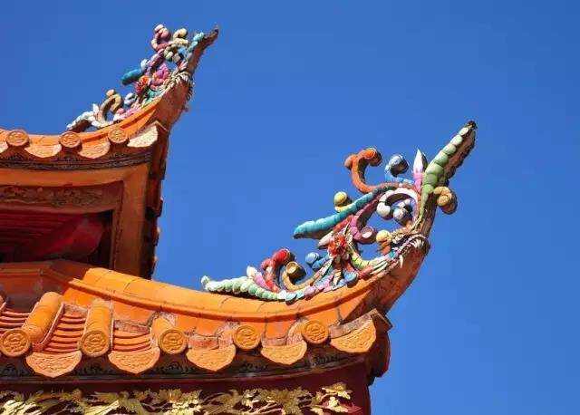 飞檐设计构图巧妙,造型优美的屋顶给人们以赏心悦目的艺术享受。飞翘的屋檐上往往雕刻避邪祈福灵兽,似麒麟,像飞鹤,有人喜欢灵兽,有人喜欢祥云,或是一条活蹦乱跳的鲤鱼,代表着临水而居的亲水文化。