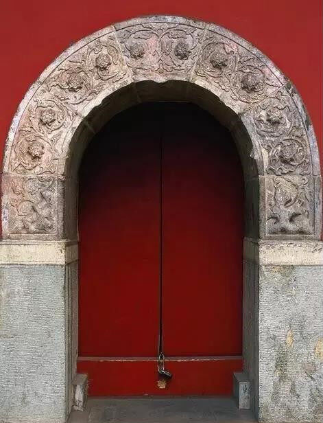 朱红色大门、镂空花窗
