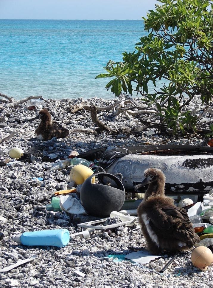 据估计,夏威夷附近的中途岛环礁每年有20吨塑料垃圾被冲走,威胁着全世界最大的Laysan信天翁。中途岛是美国国家野生动物保护区。