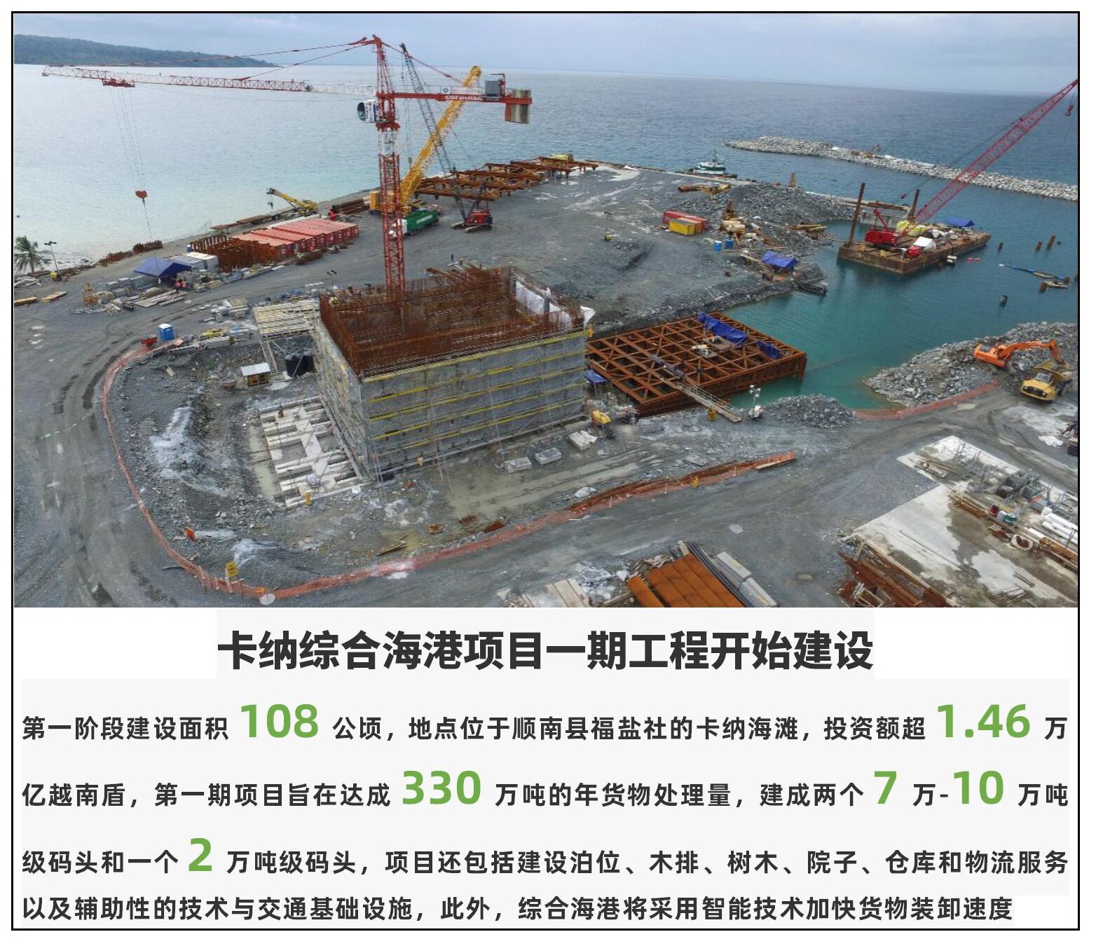 2020年8月25日,越南宁顺省中南部地区的卡纳综合海港项目一期工程开始建设。第一阶段海港建设面积超108公顷,地点位于顺南县福盐社的卡纳海滩,投资额超1.46万亿越南盾(6300万美元)。