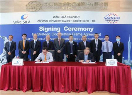 2020年9月2日,中远海运特运与瓦锡兰集团举行战略合作协议签约仪式。瓦锡兰集团东亚区业务总监 Östen Lindell先生、中远海运特运副总经理吴亮明、总经理助理顾卫东出席仪式并见证签约。中远海运特运营销中心总经理陈锋、瓦锡兰中国船用动力部销售总经理庞万力分别代表双方在协议上签字。