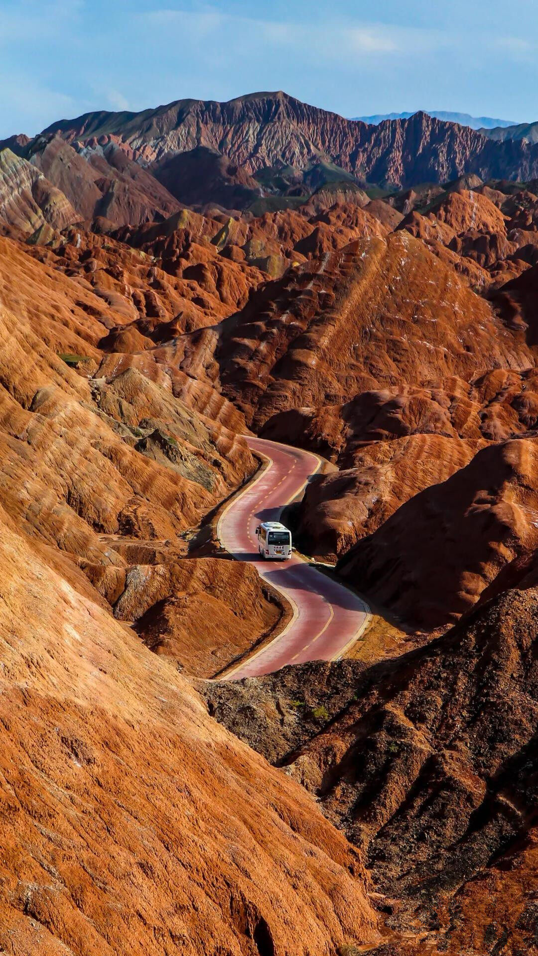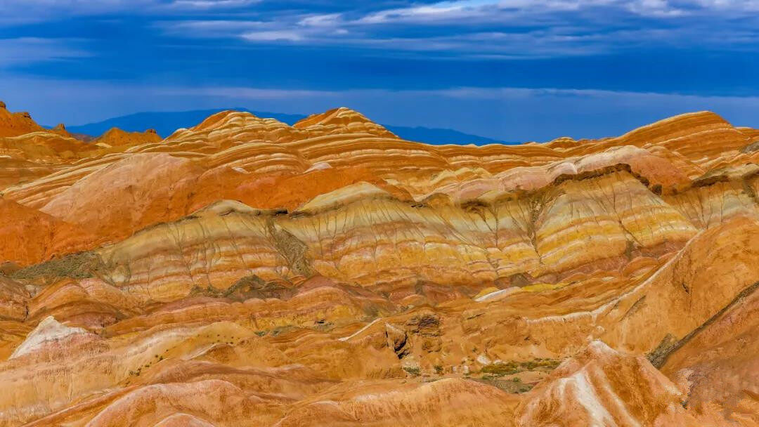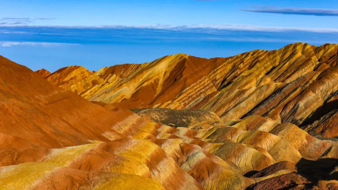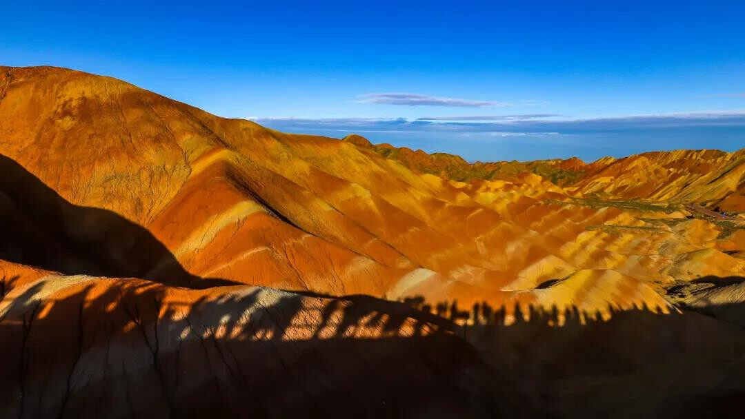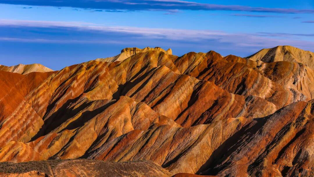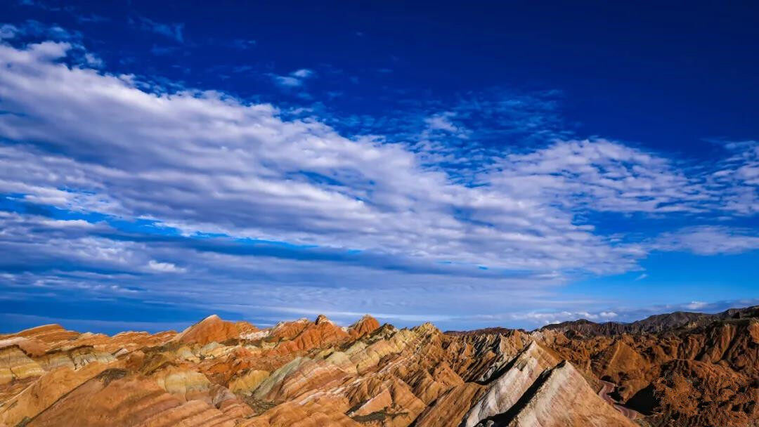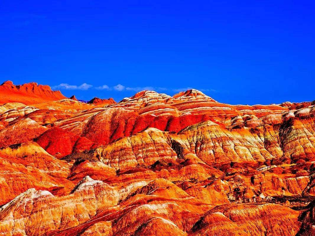 张掖丹霞地貌群,俗称张掖丹霞,由七彩丹霞和冰沟丹霞组成。当行驶的道路慢慢被红色点缀,成片成片的火红在眼前蜿蜒铺开,仿佛与上亿岁却鹤发童颜的老者们对视,原来这就是那如梦似幻的张掖丹霞。