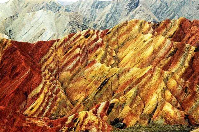 丹霞是指红色砂砾岩经长期风化剥离和流水侵蚀,形成的孤立山峰和陡峭的奇岩怪石。而这些山峰和怪石上的彩色条纹则是由沉积物中的钙、铁离子不断进行氧化还原所形成的。张掖的丹霞地貌发育于前侏罗纪至第三纪期间,形成现在这样的地貌,是大自然精心雕琢约两亿年的成果。