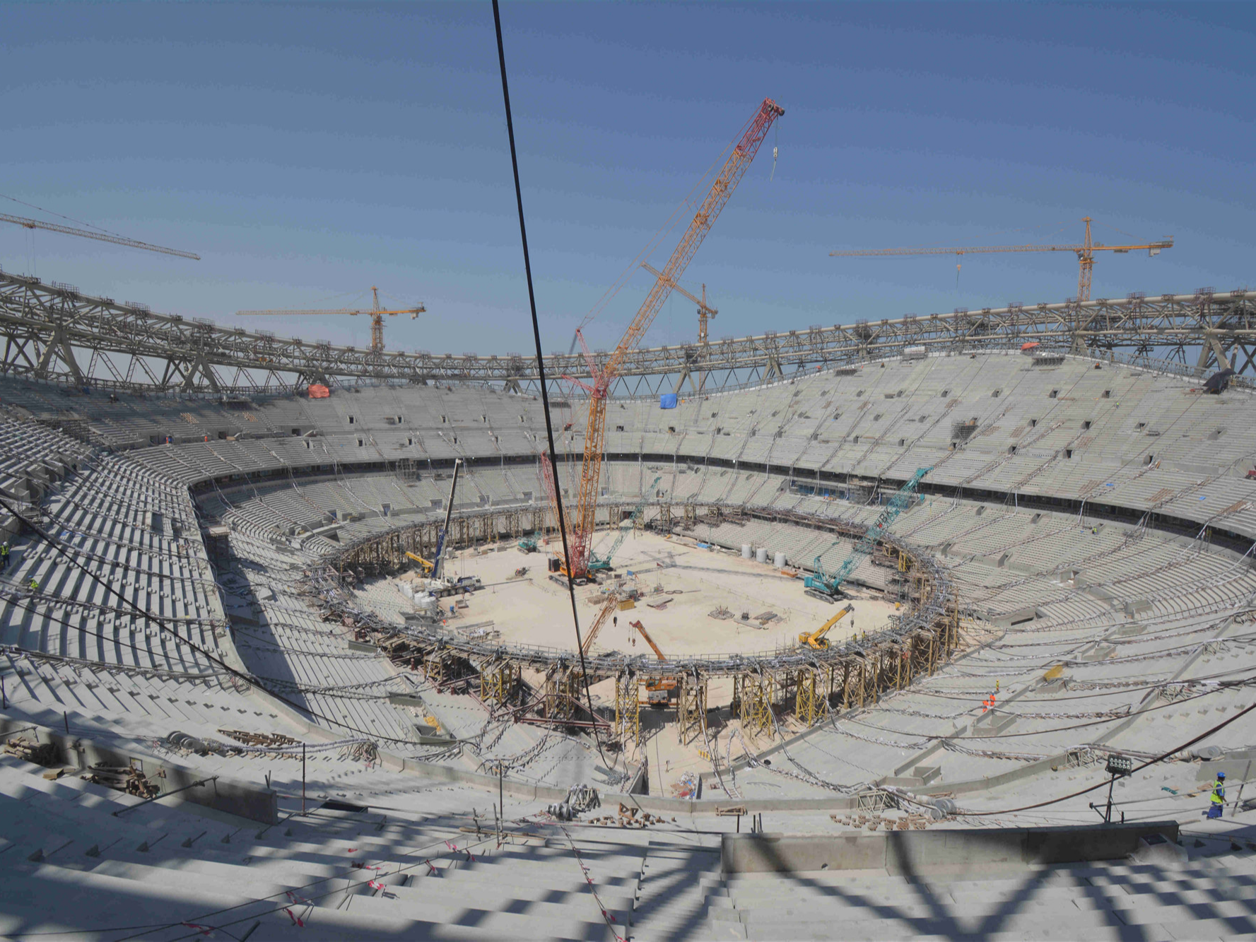 2020年9月6日,由中国铁建承建的2022年卡塔尔世界杯主体育场卢赛尔体育场项目开始进行技术难度最高、施工难度最大的屋面索结构提升阶段。