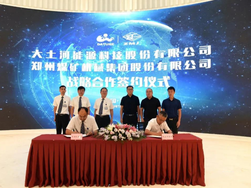 2020年9月10日,为促进高效发展,创新工作模式,提升工作效率,综合应用新基建的智能化,郑州煤矿机械集团股份有限公司与大土河能源科技股份有限公司签订战略合作协议。