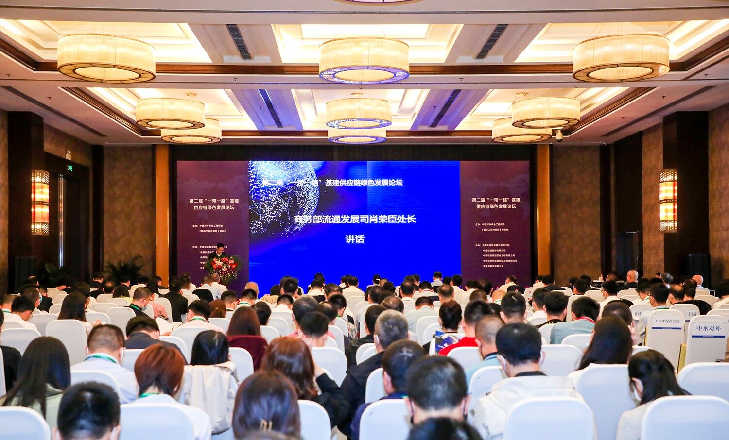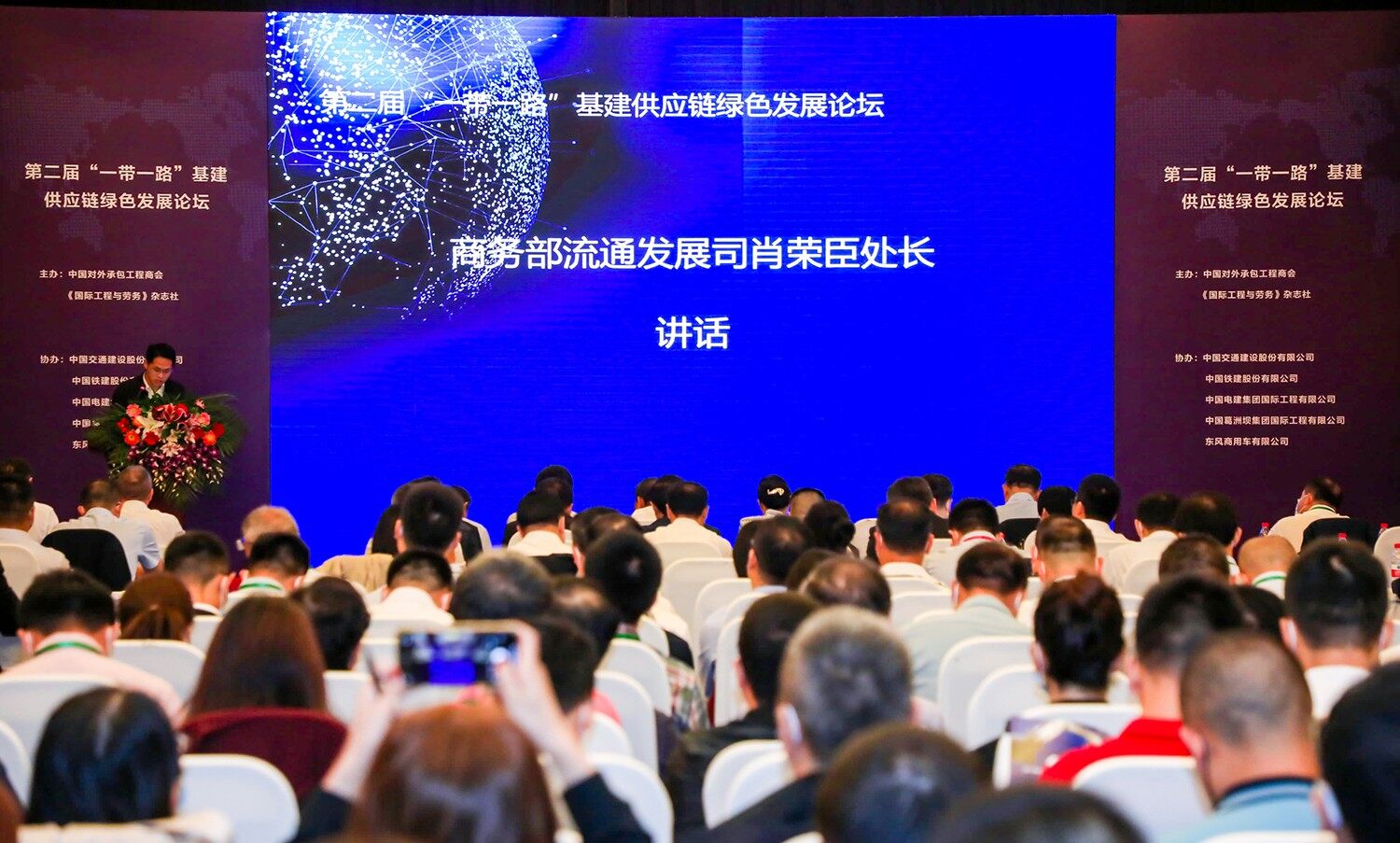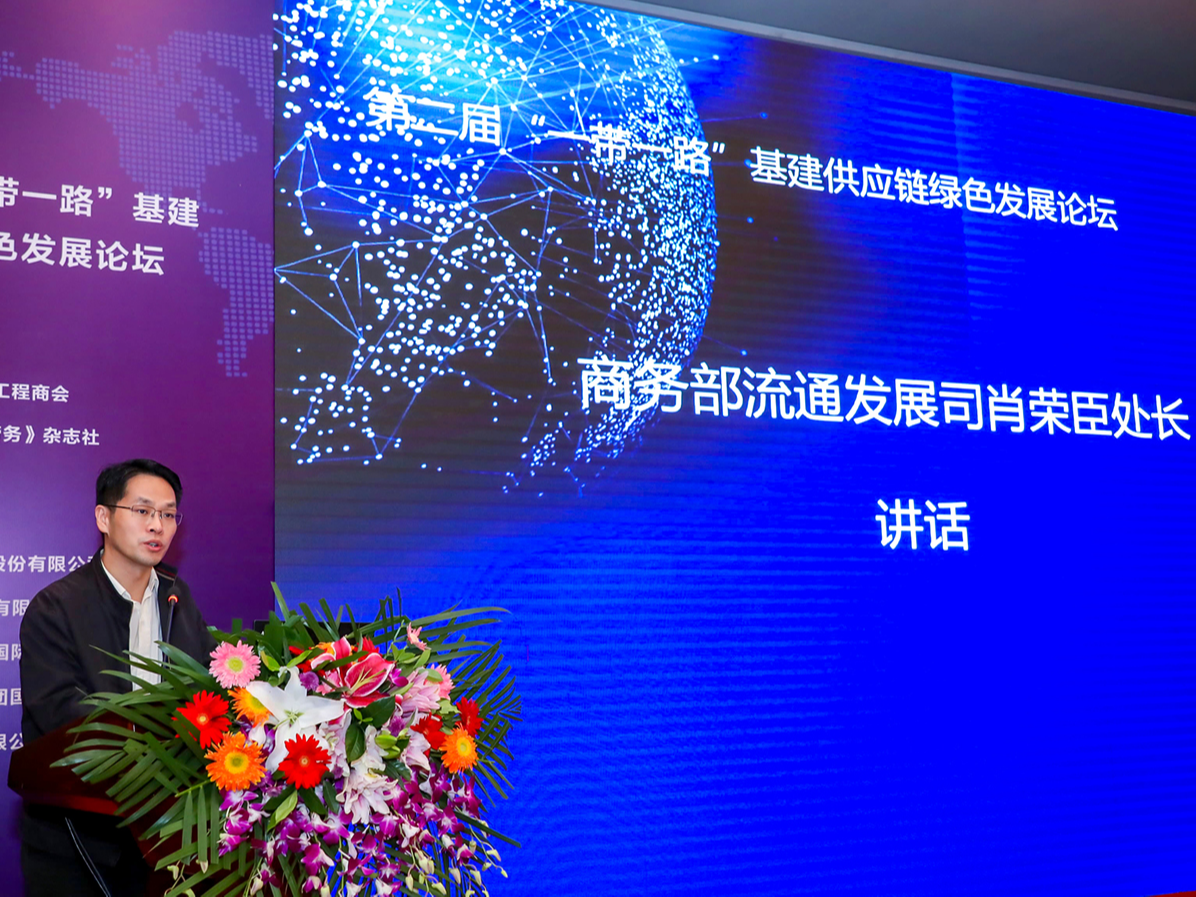 2020年9月24日,由中国对外承包工程商会和《国际工程与劳务》杂志社主办的第二届一带一路基建供应链绿色发展论坛会议顺利开幕,商务部流通发展司肖荣臣处长在会议上致辞。