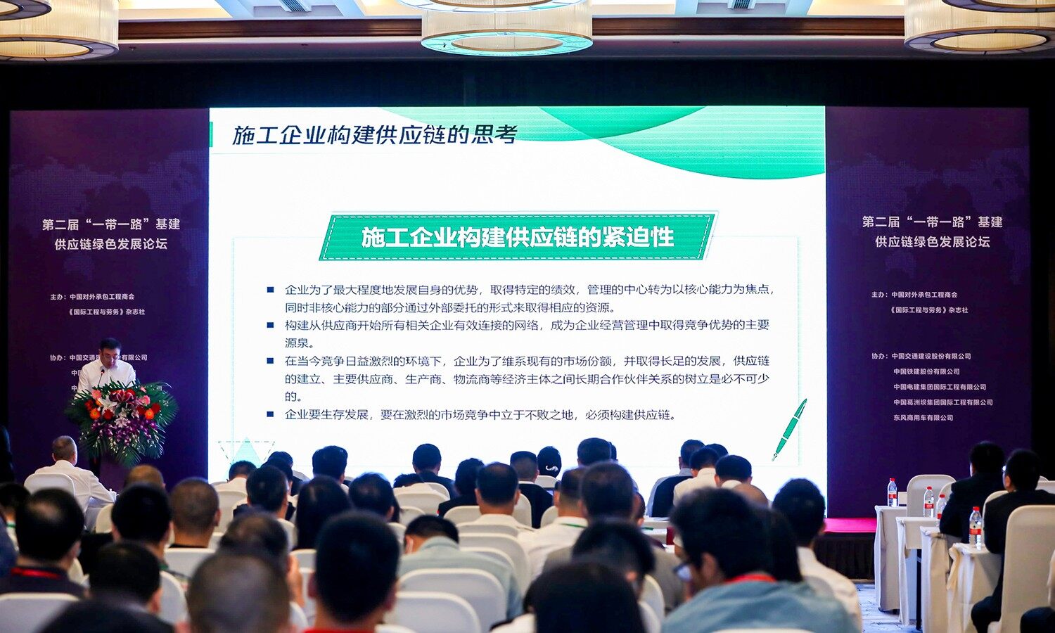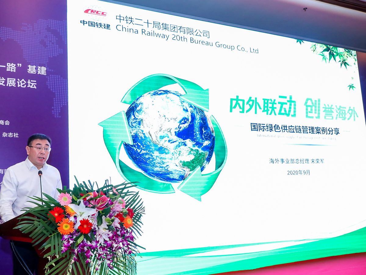 9月24日,第二届一带一路基建供应链绿色发展论坛在京金辇酒店召开,其中,中铁二十局集团有限公司海外事业部总经理宋荣军就“内外联动、创誉海外--国际绿色供应链管理案例分享”在会议中作了详细介绍。(转载请注明见道网www.seetao.com)见道网工程栏目编辑/贺玉婷