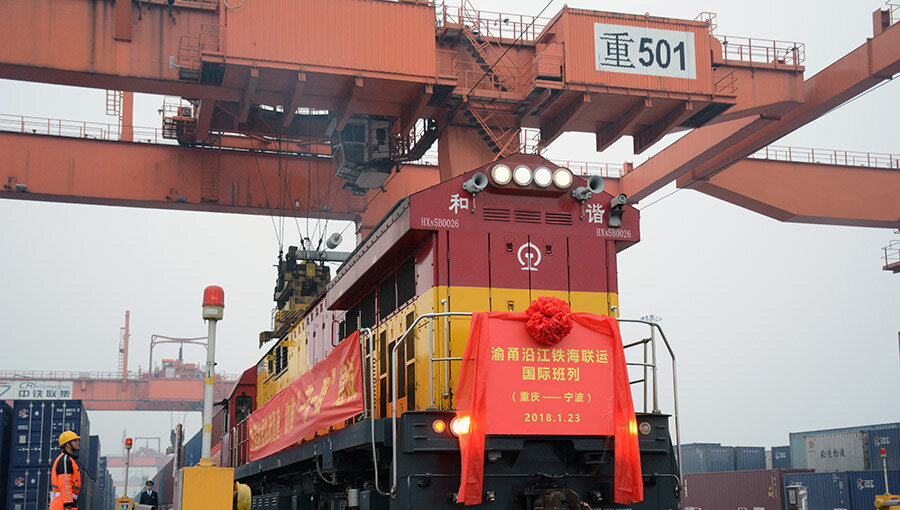 2018年月23日,重庆至宁波(渝甬)沿江铁海联运国际班列在重庆团结村铁路集装箱中心站首发开行
