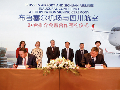 3月11日,四川航空与布鲁塞尔机场在成都联合举办货机产品推介会,双方围绕货机运营、航线开通等业务达成合作,正式签署合作协议。