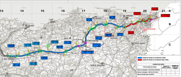 该项目涉及20个收费站及相关省域的配套工程,主要包含土木、建筑、通信、机电、公共照明、场内道路、钢结构等工程。项目收费站点横跨阿尔及利亚东部8个省共400多公里,东一标段包括EL TARF省至SKIKDA省区间内的10个收费站工程和相关省域内的附属工程,以及本项目全部钢结构工程;东二标段涵盖从CONSTANTINE省至BBA省区间内10个收费站工程及相关省域内的附属工程。目前,该项目已开始紧锣密鼓建设中。