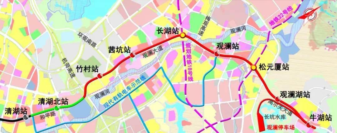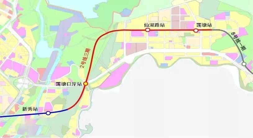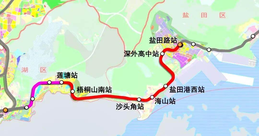 深圳地铁2号线三期起自新秀站,终于莲塘站,线路全长约3.78公里,沿途设3座车站。深圳地铁8号线一期始于梧桐山南站,终至盐田路站,长约12.36公里,沿途设6座车站。