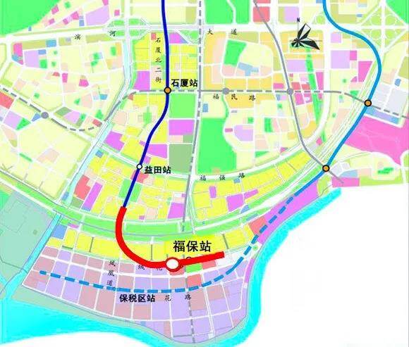 深圳地铁3号线三期起于既有线益田站,向南延伸至福田保税区,共设车站1座及1个区间,全长1.45公里,建成后,实现深圳福田保税区直联地铁网络,交通便利性大大提升。