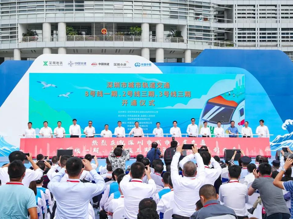 2020年10月28日,由中国中铁所属单位参建的深圳城市轨道交通2号线三期、3号线三期、4号线三期、8号线一期在内的四条地铁新线同时开通。至此,深圳地铁运营里程突破400公里,达到411公里,中国中铁为深圳城市轨道交通建设蓝图又添浓墨重彩的一笔。
