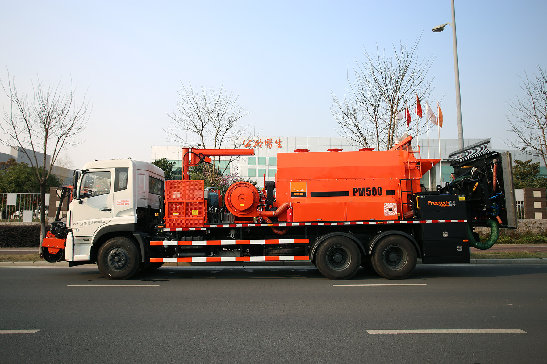 高远圣工依托公路养护装备国家工程室,研制开发的路面养护车系列产品涵盖了目前道路日常养护作业的多个方面。产品研发紧紧围绕国家政策与道路养护的发展需求,以资源回收、环保再生、节能减排、低碳经济作为核心研发方向,推出的真正实用的符合各种工况需求的路面养护系列产品。浙江美通筑路机械股份有限公司的热再生路面养护车及保温车最早由上海浦东公路养护建设有限公司引进上海。其LMT5130TYHZ型热再生路面养护车倡导的绿色养护理念,节约了宝贵的沥青、石料等自然资源,实现了资源回收利用。且该车集RAP料现场热再生、冷料加热、新料拌合等多种功能于一体,可全天候作业,节约使用成本,实现经济性和实用性的结合。LMT5164TYHB型储料式(保温料箱)路面养护车(国V)储料式(保温料箱)路面养护车则采用了二类汽车底盘加装,并由美通制造的沥青混合料保温料箱、沥青罐、导热油加热系统组成。保温料箱采用导热油和烟气复合保温,热效率高,满足沥青混合料长距离保温运输的需求。“设备主要定位于高速公路和一、二级干线公路以及市政道路的路面坑槽、龟裂等早期病害的养护施工,是我们全新开发设计的第四代新型储料式(保温料箱)路面养护车产品。”美通筑路的销售总监侯佑军补充道。