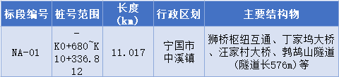 宁国至安吉高速公路安徽段工程施工(含路基、路面、桥涵、隧道工程),包含施工、交验、缺陷期修复等工作内容。本次招标划分为1个施工标段,标段划分如下: