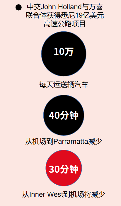 为了保证高速公路工程施工质量得到更好的控制,提升高速公路工程的整体经济效益,由中国交通建设集团拥有的澳大利亚承包商John Holland和Vinci子公司Seymour Whyte被选中设计和建造悉尼Gateway高速公路。