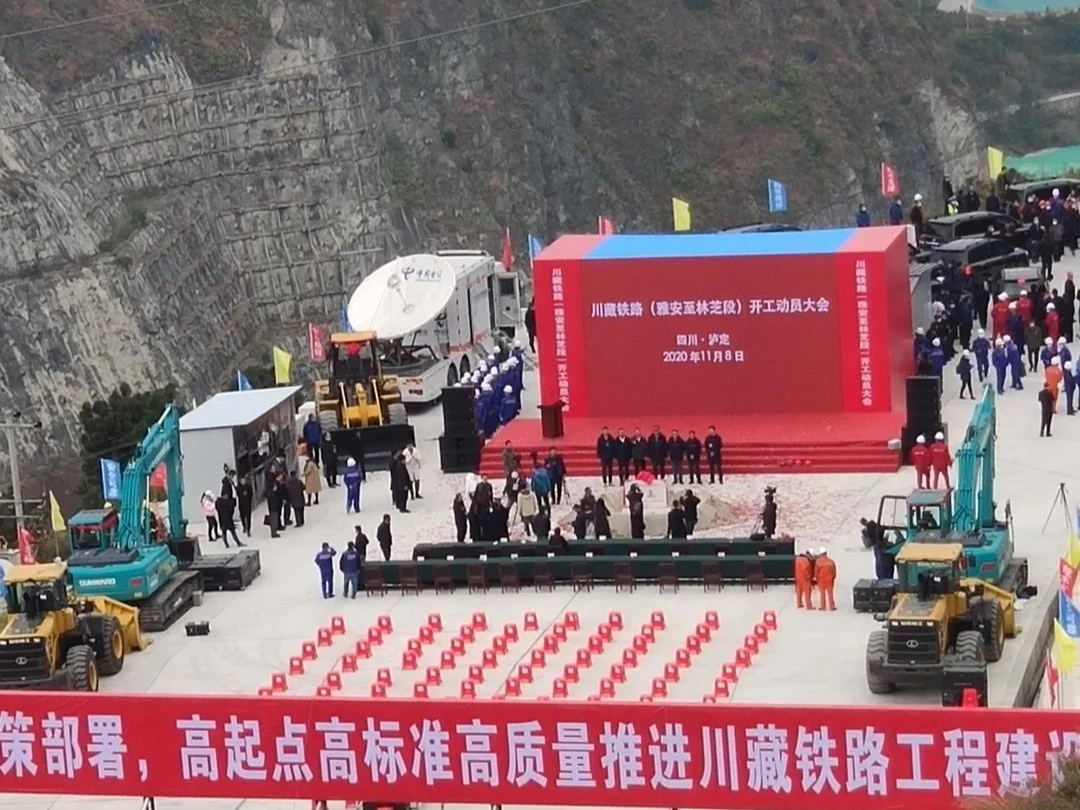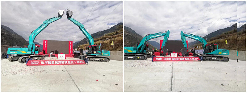 2020年11月8日,川藏铁路(雅安至林芝段)开工动员大会在北京和川藏铁路控制性工程色季拉山隧道、大渡河特大桥三地,以视频连线的方式同时进行。山河智能挖掘机紧跟开工动员步伐,率先到达四川泸定主会场,助力川藏铁路雅林段建设施工。