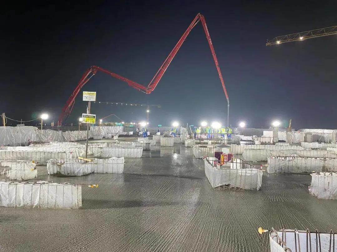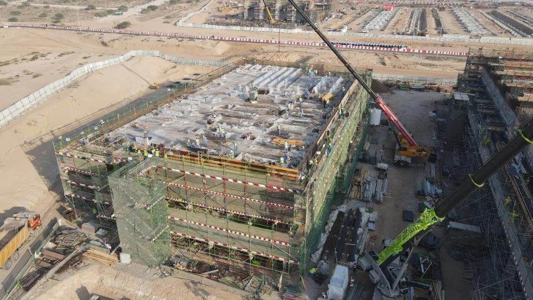 2020年11月9日晚,中国能建葛洲坝集团承建的阿联酋乌姆盖万150MIGD海水淡化项目顺利完成首个建筑物预处理电气楼结构封顶。