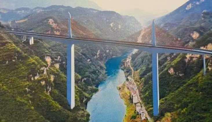 There is also the Pengyou section of the Mozhai Wujiang River Bridge, with a total length of 708 meters. The main bridge is a 153+296+253-meter prestressed concrete partially cable-stayed bridge. The No. 3 main pier is 216 meters high and the No. 4 main pier is 185 meters high. The span and pier height are in the forefront of similar bridges in Asia.