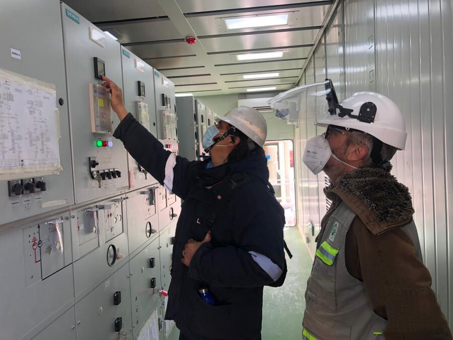 9月26日,阿根廷技术人员在胡胡伊省高查瑞300兆瓦光伏发电项目现场检查设备运行状况。