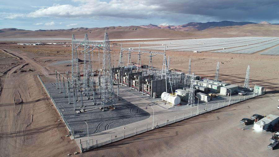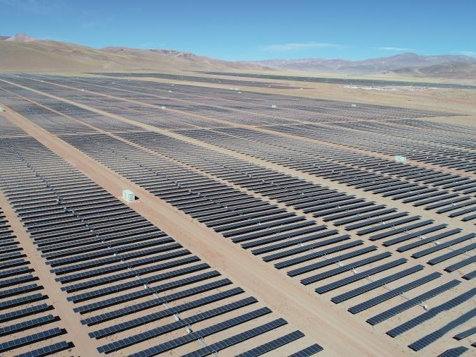 在阿根廷高原山地的崎岖道路上蜿蜒前行,荒无人烟的戈壁上一片灰黄,偶尔能看到几株仙人掌矗立在戈壁与蓝天之间,直到高山间出现一片开阔的平地,一排排蓝色的光伏板映入眼帘。这是位于阿根廷西北部胡胡伊省安第斯山区的高查瑞光伏电站项目,从省会城市出发,大约4小时车程抵达现场。