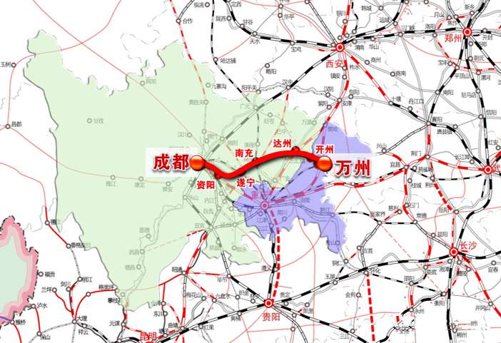 成达万高铁线路全长486.4公里,其中新建铁路432.4公里。全线共设天府、天府机场、资阳西、乐至、遂宁、蓬溪南、南充北、营山西、渠县北、达州南、开江南、岳溪、万州北13座车站。项目总投资851亿元,建设工期5年。