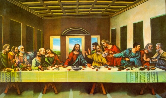在庆祝逾越节的前夜,耶稣和他的十二门徒坐在餐桌旁,共进庆祝逾越节的一顿晚餐。餐桌旁共十三人,这是他们在一起吃的最后一顿晚餐。(编辑:刘晓玉)