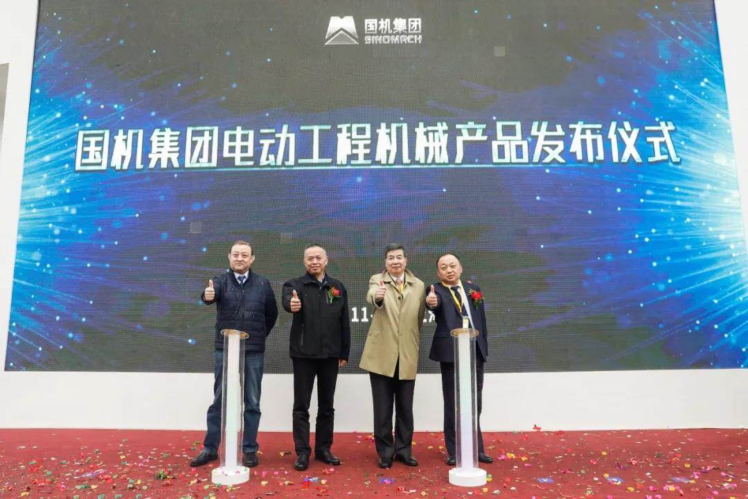 发布仪式最后由中国国机重工集团有限公司总经理王伟炎、国机重工集团常林有限公司总工程师殷鹏龙、中铁建锦鲤资产管理有限公司党委书记金守华、中国铁建股份有限公司发展规划部副总经理白云飞,共同为产品揭幕,323Ev电动挖掘机、950E电动装载机两款电动产品正式亮相在全球观众面前!
