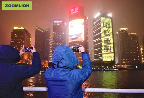 尊贵的客户在品味美食之余,纷纷汇聚在甲板上游览黄浦江夜景,观赏东外滩万国建筑群的华丽梦幻,感受陆家嘴天际线绚丽摩登。其中“中联重科”醒目的外滩广告成为众多风景中最亮眼的一道绿色光芒。
