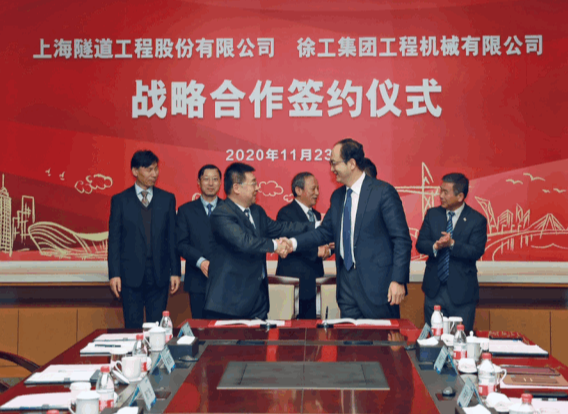 2020年11月26日,徐工集团工程机械有限公司与上海隧道工程股份有限公司签署战略合作框架协议,共约在工程机械高端装备研发制造、产业化合作及智慧化服务等领域深化合作,共同发挥各自人才、技术、资源优势,携手提升国产高端装备制造能力,赋能中国企业工程建设领域核心实力。