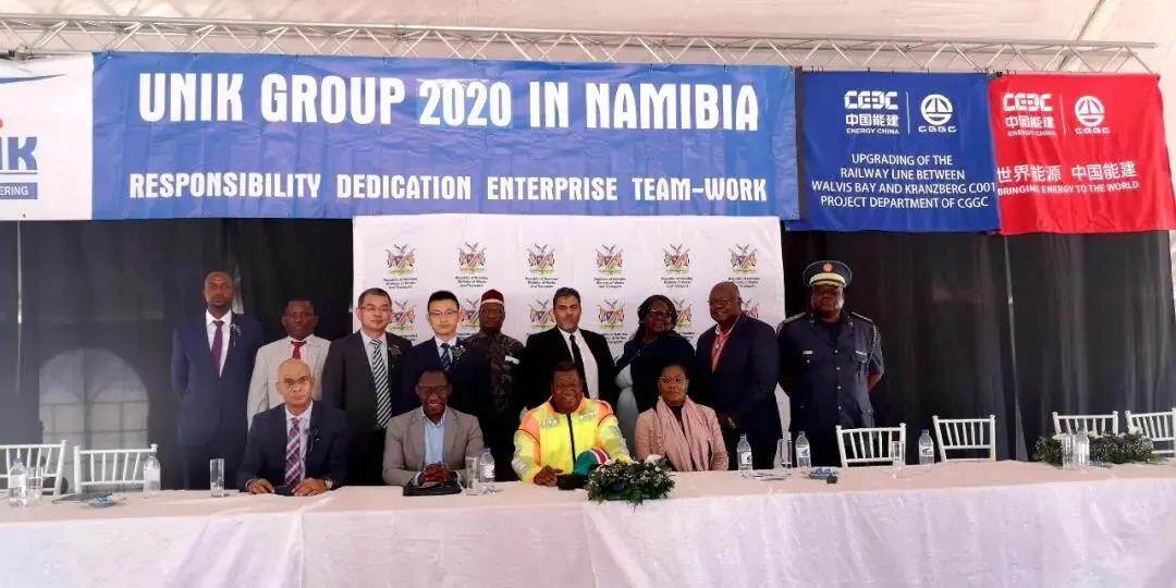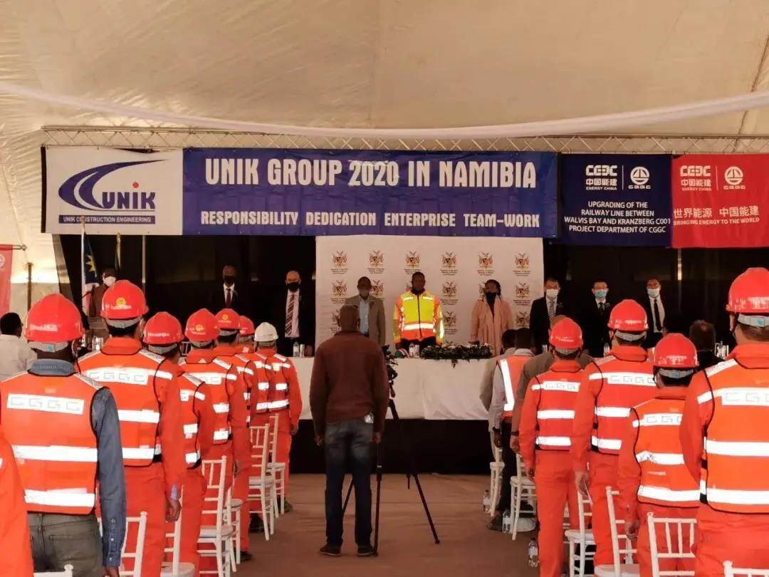 2020年11月30日,由中国能建葛洲坝集团承建的纳米比亚鲸湾港至阿兰蒂斯铁路修复升级项目在阿兰蒂斯举行开工仪式。纳米比亚工程与交通部部长、项目所在地埃隆戈省省长、非发行、业主、监理工程师、承包商代表当地媒体120余人共同见证。