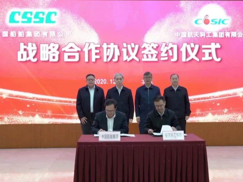 2020年12月1日,中国航天科工集团有限公司与中国船舶集团有限公司在京签署战略合作协议。双方将聚焦主责主业,在装备制造、信息技术、现代服务业等领域拓展合作空间,加强合作深度,共同推动高质量发展,进一步支撑国家安全体系和能力建设,为国防和军队现代化建设贡献更大力量。