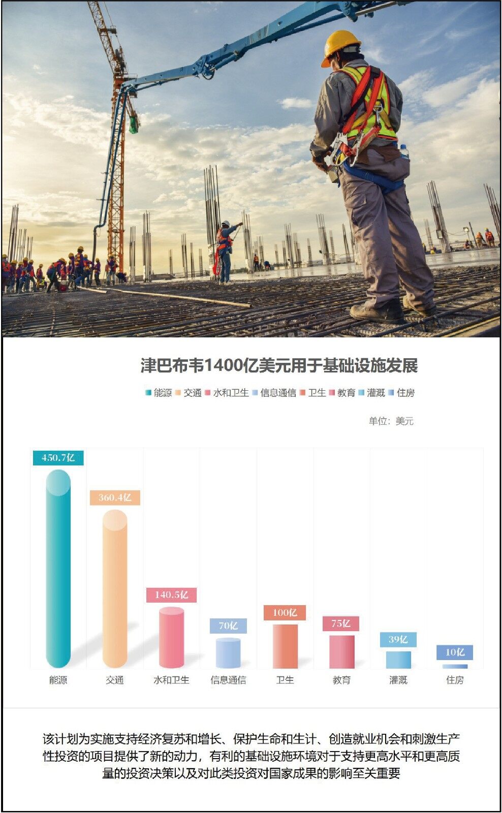 2021年将有近1,400亿美元投资于公共基础设施,以确保所有人都能参与津巴布韦的社会和经济发展,其中能源,交通,水,卫生,住房,教育,ICT和灌溉领域的投资将遥遥领先。