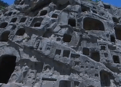 武则天称帝后,为了回报佛教,在龙门大开石窟,女皇崇佛,王公贵族们也跟风营造。龙门石窟迎来了有史依赖最为强大的开凿风潮,东山万佛沟一带的高平郡洞,三佛洞,弥勒洞以及西山的极南洞,龙华寺,彩帛行净土堂 八作司,摩崖三佛龛,伊水两岸的岩壁上密密麻麻的洞窟如同蜂巢一般,龙门石窟进入全盛时期。