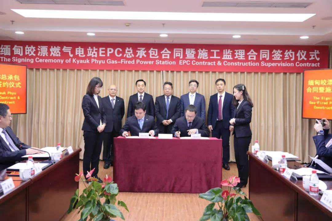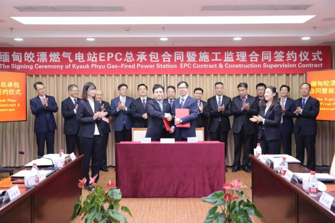 2020年12月10日上午,缅甸皎漂燃气-蒸汽联合循环电站EPC总承包合同暨施工监理合同签约仪式在电建海投公司总部举行。公司董事长盛玉明,总经理杜春国,电建国际公司总经理季晓勇,山东电建一公司董事长王守民,水电十局董事长何其刚,华中院董事长贾志杰,河北院董事长周新军等领导以及参建单位相关领导和负责人出席签约仪式,公司副总经理蔡斌主持仪式。