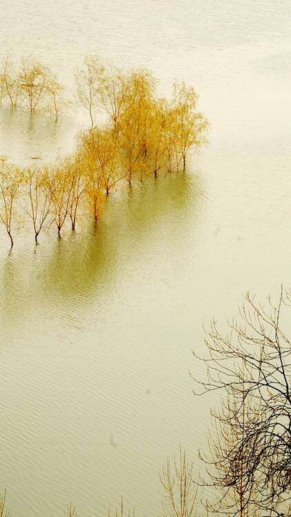 تحت مياه النهر الأصفر ، أصبح "ميليانغتشوان". بعد مغادرة لانتشو ، يتدفق النهر الأصفر عبر مدينة بايين إلى نينغشيا. لتوفير مصدر مستمر للمياه للمنطقة المحلية ، أصبح شاطئ Baiyinjingtai Gobi السابق "نهر أرز" تحت مياه النهر الأصفر. في بايين ، قانسو ، غطى ضباب الصباح النهر الأصفر المتعرج مثل الشريط ، وكان كل شيء مثل الحلم.