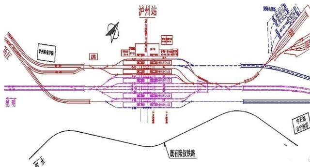 位于泸州市龙马潭区千凤路,已接入隆黄铁路、渝昆高速铁路、川南城际铁路等3条铁路,未来引入泸遵高速铁路,设南北双广场,为站房、站台双高架车站,按5台12线规模布置,其中渝昆车场按3台7线布置,川南城际场按2台5线布置。泸州站一期站房规模约为4万平方米,计划2021年建成,总建筑面积约10万平方米。