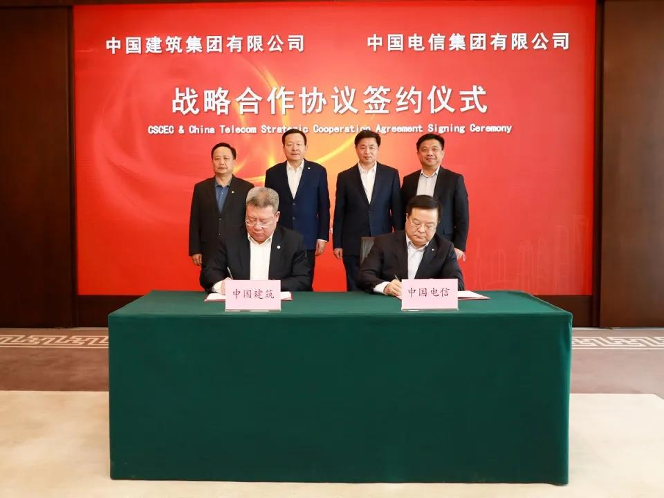 2020年12月11日,中建集团党组书记、董事长周乃翔,党组副书记、总经理郑学选在北京总部会见中国电信党组书记、董事长柯瑞文,党组副书记、总经理李正茂,并签署战略合作协议。双方表示,将深入学习贯彻党的十九届五中全会精神,融入并服务网络强国、数字中国建设,充分发挥各自在行业中的领军作用,在建筑产业互联网、信息化管理、新型基础设施建设等领域开展全面合作,加快产业数字化转型,推动企业高质量发展。