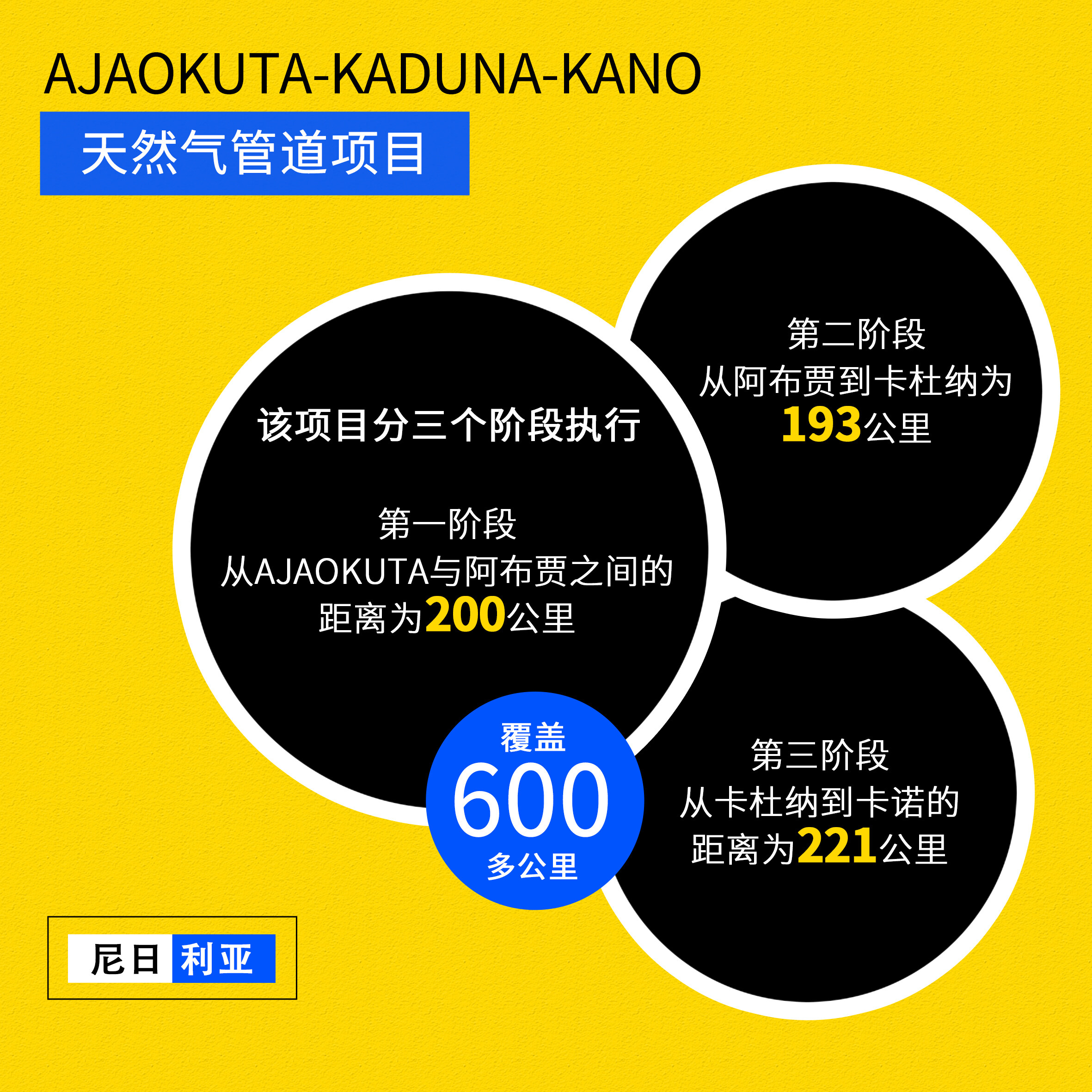 该项目分三个阶段执行。第一阶段从Ajaokuta与阿布贾之间的距离为200公里,第二阶段从阿布贾到卡杜纳为193公里,第三阶段从卡杜纳到卡诺的距离为221公里。