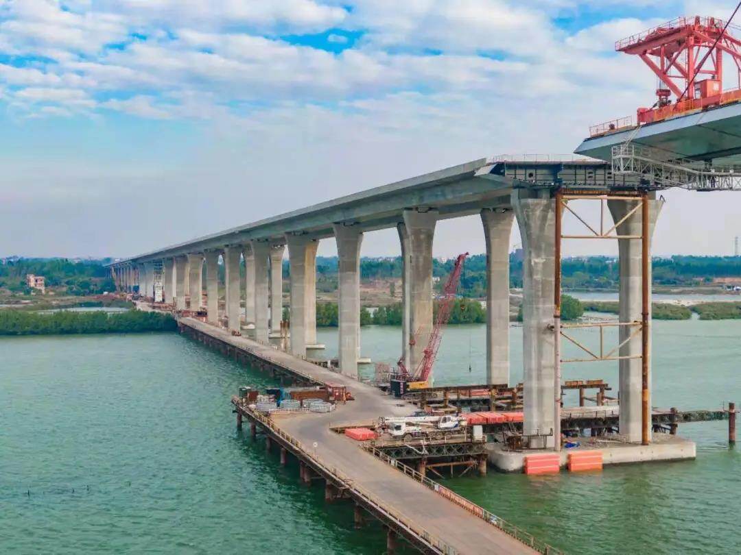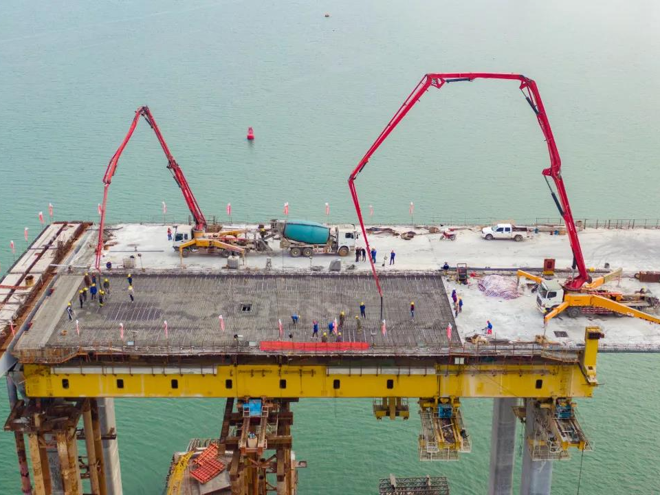 12月20日17点34分,经过12个小时的连续作业,中铁大桥局承建的湛江调顺跨海大桥最后一孔移动模架现浇箱梁浇筑完成,这标志着调顺跨海大桥引桥主体结构全部完成为后续大桥合龙奠定了坚实基础。