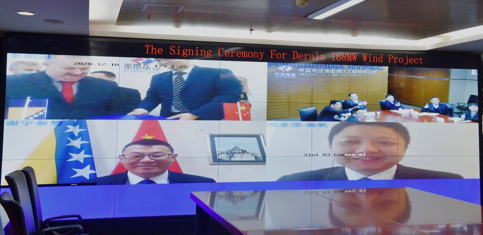 2020年12月18日,湖北工程公司举行波黑德容拉风电项目EPC总承包合同线上签约仪式。中国驻波黑共和国大使馆经商处参赞谢宇、波黑共和国相关政府人员、项目业主G&G能源公司总裁Felic先生、湖北工程公司主要领导出席了会议。会议由电建国际欧亚区域总部相关负责人主持。