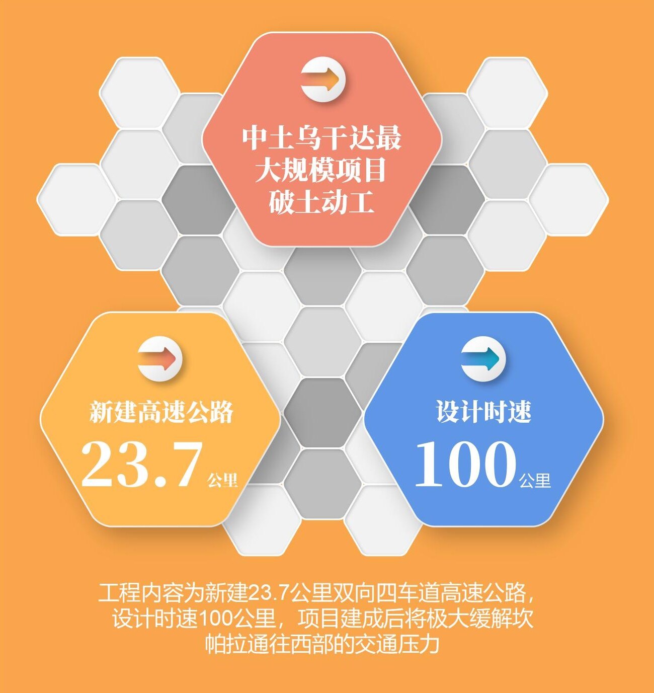乌干达布塞噶至姆匹吉高速公路项目是中国土木自1999年进入乌干达市场以来中标的规模最大的项目,也是2016年大选后乌干达政府发包的规模最大的现汇项目。该项目东起坎帕拉西郊的布塞噶,西至姆匹吉,工程内容为新建23.7公里双向四车道高速公路,设计时速100公里,项目建成后将极大缓解坎帕拉通往西部的交通压力。