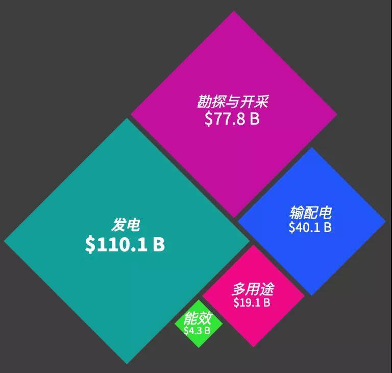 从能源子部门来看,中国在海外发电领域投资最多(1101亿美元),其次是能源勘探和开采(778亿美元)、输配电(401亿美元)、能效(43亿美元),还有191亿美元涉及多个子部门。