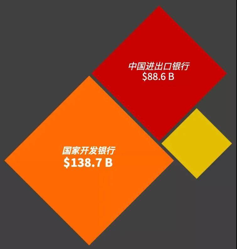 从贷款方来看,国家开发银行最多(1387亿美元),其次是进出口银行(886亿美元),还有两家银行的联合融资(240亿美元)。