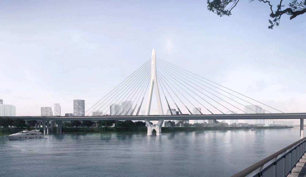 There is 1 extra-river bridge (Baisha River Bridge), 1 interchange (Jianjian Avenue interchange), 2 ramps (Datansha Island Interchange C and D ramps) and the connecting section of Datansha Island along the river road (long about 1.2 km). The design creativity of the bridge tower symbolizes that the two cities of Guangfo have joined hands to compose a new chapter of Guangfo city.