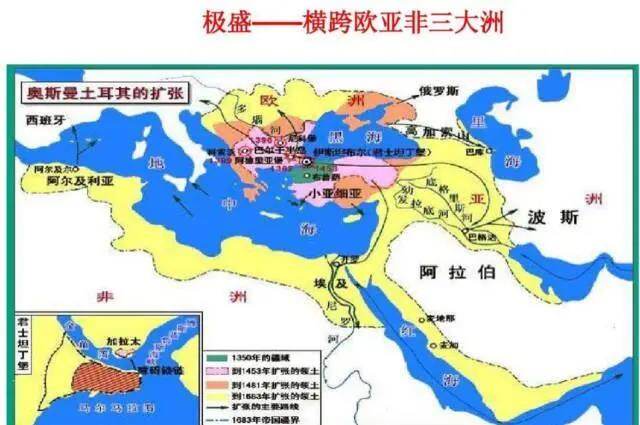 全盛时期的奥斯曼帝国横跨欧亚非三大洲,控制了北非、小亚细亚、巴尔干、高加索、两河流域、红海埃及以及北非、东非、克里米亚等辽阔的土地。
