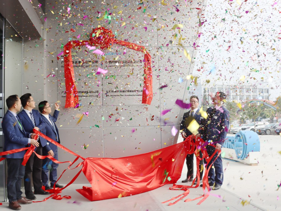上前揭牌的领导分别是:广西美斯达集团副总裁 黄康南;广西柯瑞机械设备有限公司董事长 黄国和; 广西美斯达凿岩机械设备有限公司总经理 李祖军 ; 普石勒(上海)机械设备有限公司副总经理 张玉熙;广西美斯达工程机械设备有限公司 华东大区 区总 吴世民;